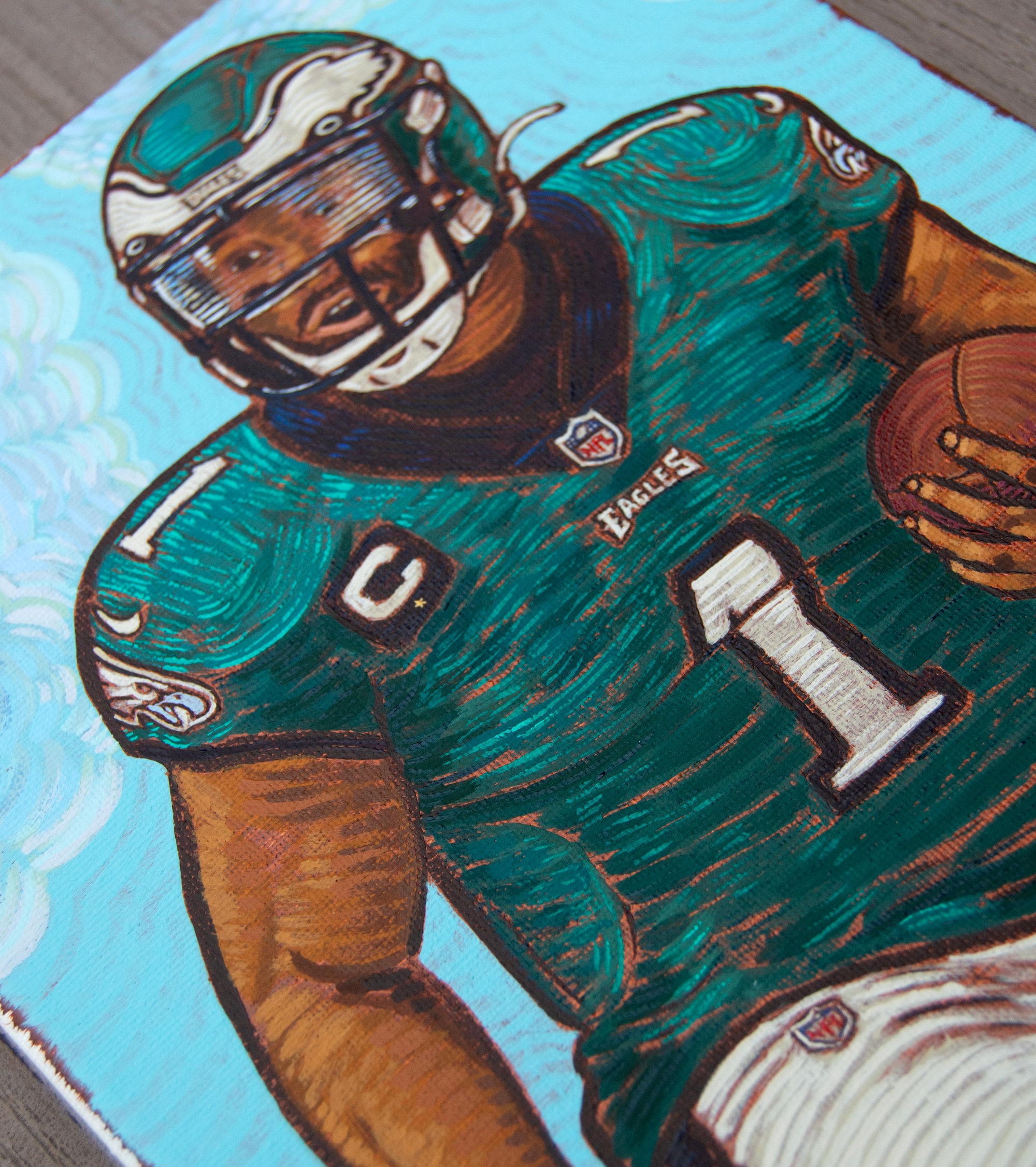 A painting I did of the Philadelphia Eagles quarterback Jalen Hurts.